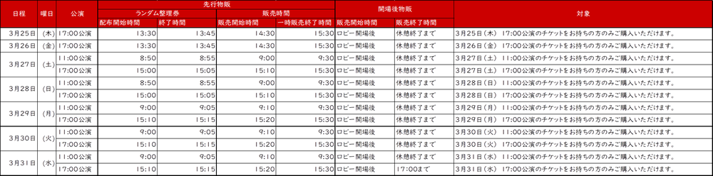 ※都合上、3月31日(水)17時公演は、開演後にグッズ販売を終了とさせていただきます。