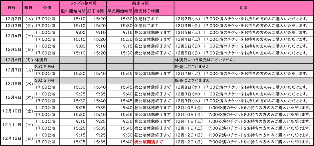12月2日(木)~12月12日(日)の公演のグッズ販売情報を更新いたしました。